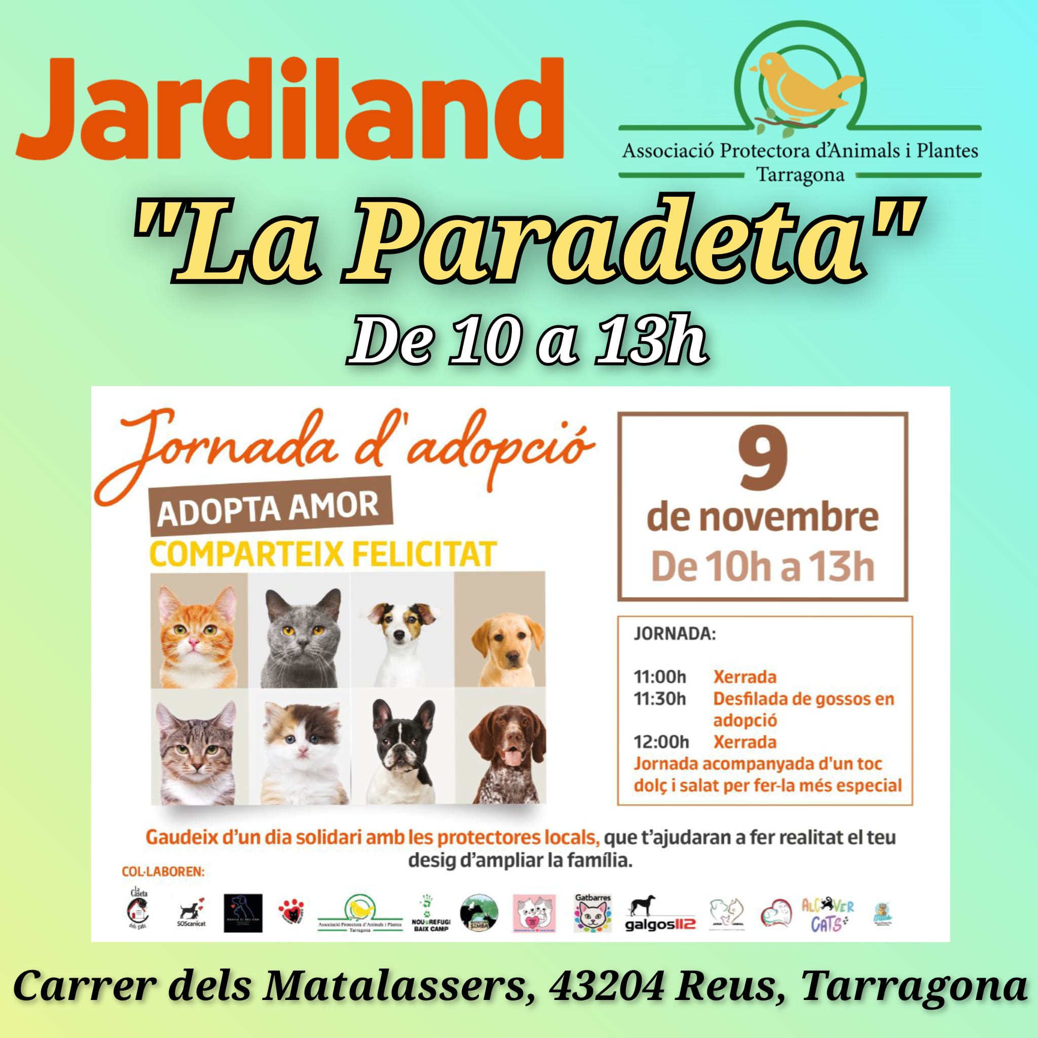 Para noviembre apuntad en la agenda el 9 de Noviembre que estaremos con nuestra Paradeta en ja Jornada de Adopción organizada por Jardiland de 10 a 13h con alguno de nuestros perros. Ven a conocerlos!