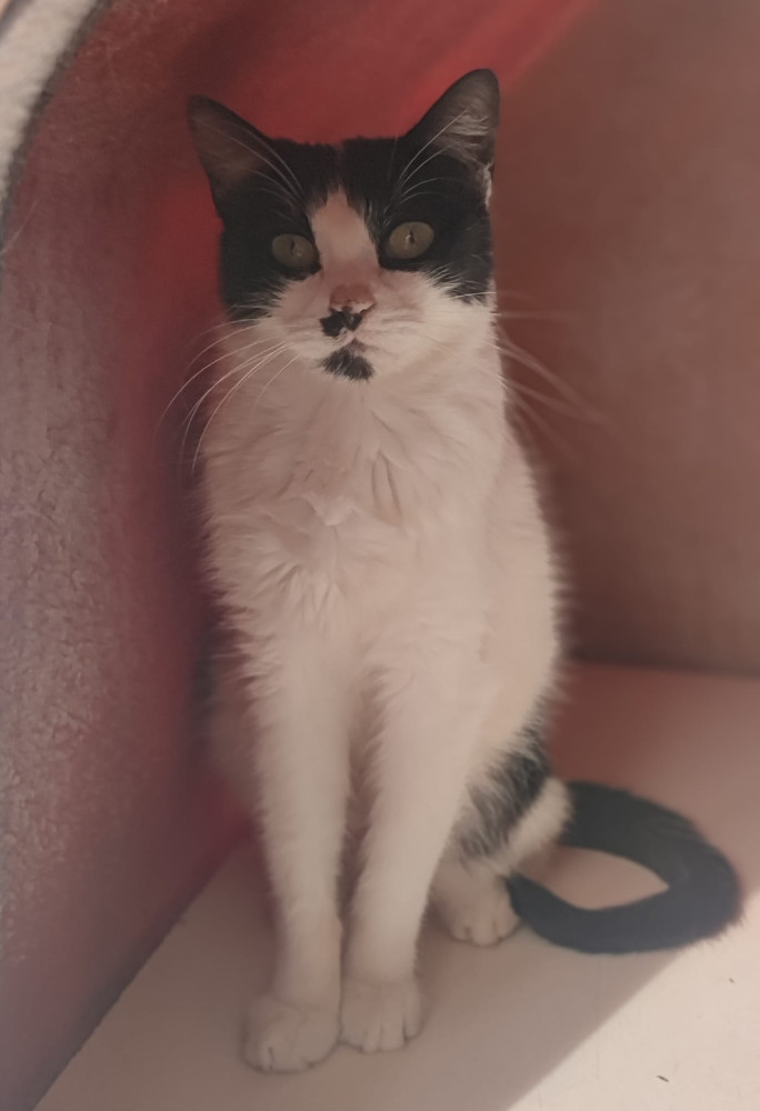Xiruca llegó en 2019 de bebé, y aun sigue en la protectora, es timida, pero muestra curiosidad por los humanos. Con los gatos genial, así que solo necesita una familia con gatos y un poco de paciencia, el tiempo y el amor hará el resto