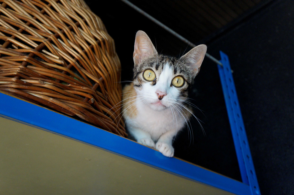 Tengo que compartir jaula con muchos gatos, todos muy adultos y muy aburridos, solo tengo 5 meses, no es justo.