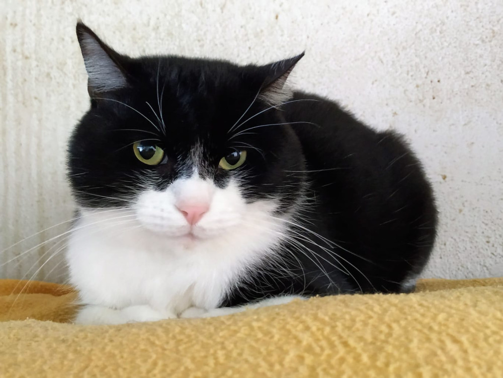 Hola Soy Desnoni y soy uno de los gatazos de la protectora. No soy cariñoso con humanos, pero soy compañero ideal de los gatos de la prote, en invierno me pongo un poco gordito y se me pone una cara hermosa como la que veis en las fotos