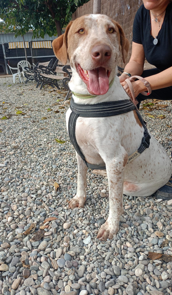 Hola! Soy Sandro, un mestizo de pointer y llevo ya algo más de un añito en la protectora. En este corto espacio de tiempo me he convertido e uno de la prote, porque aunque he crecido y he alcanzado mi tamaño definitivo mantengo el carácter de cachorro, sensible y amigable con todos.