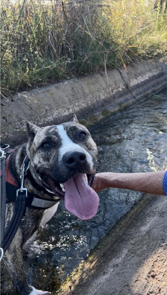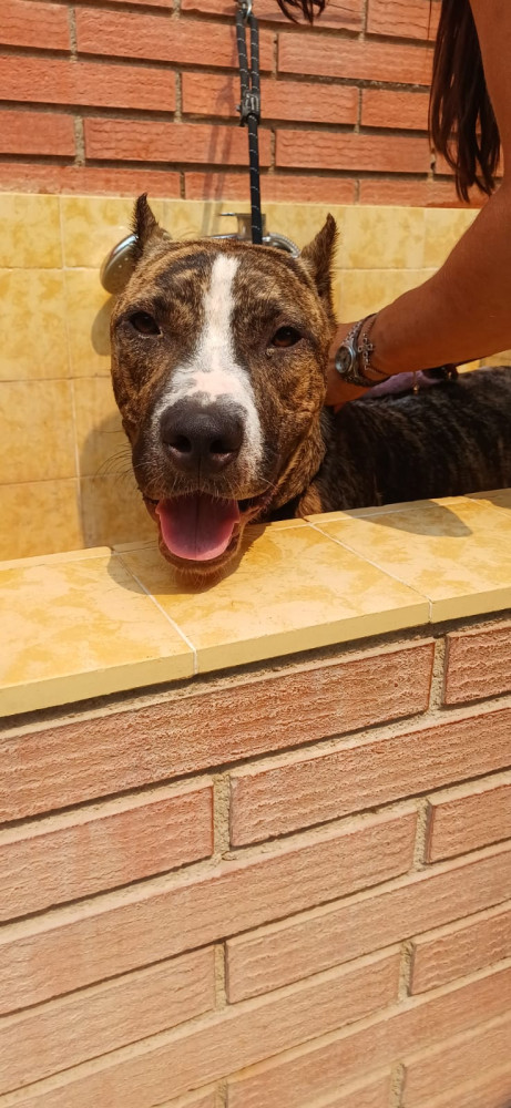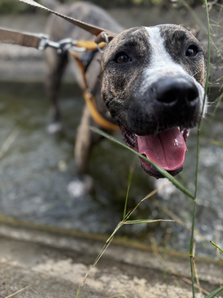 Pasea bien con correa, va oliendo y explorando, cosa que favorece los paseos y una buena forma de relajarse.