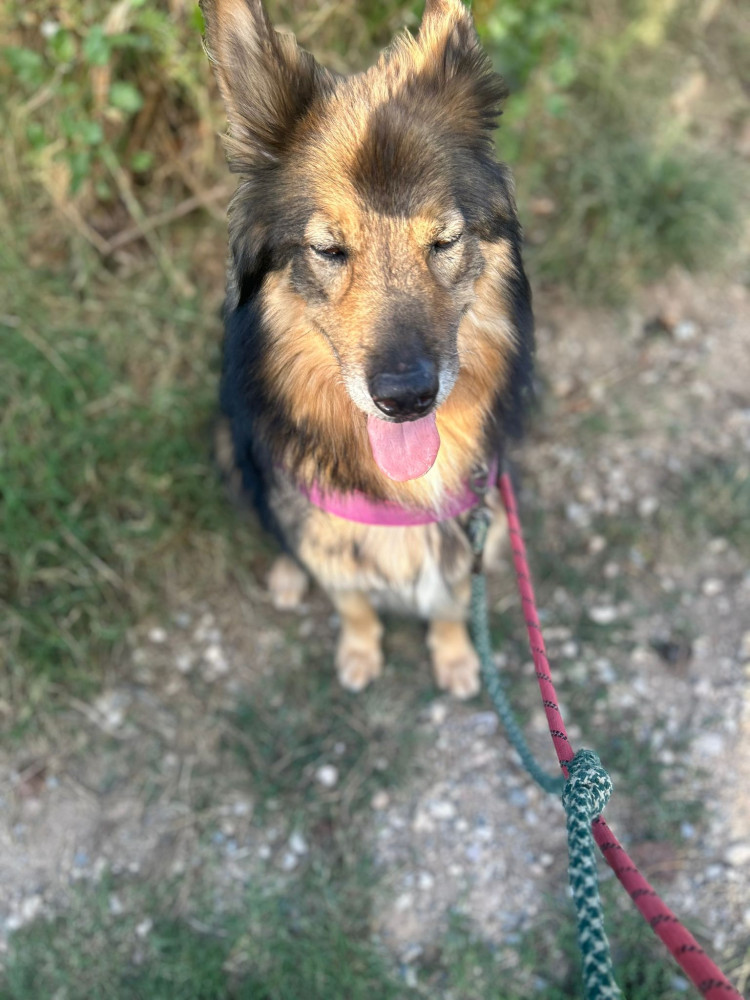 Rondon es un mestizo de collie, tiene unos 5 años y llegó muy desubicado. Los paseos para él eran tensos y miraba hacia todos lados queriendo huir pero después de casi 3 meses, se va adaptando a las nuevas rutinas. No sabemos si tal vez vivía en algún terreno puesto que con correa es algo reactivo cuando ve a otros perros, pero puede ser por tantas razones.., A pesar de eso, pasea bien, sin dar tirones y es obediente, incluso tiene ese punto cariñoso que tanto nos gusta a los humanos que tengan los perretes.