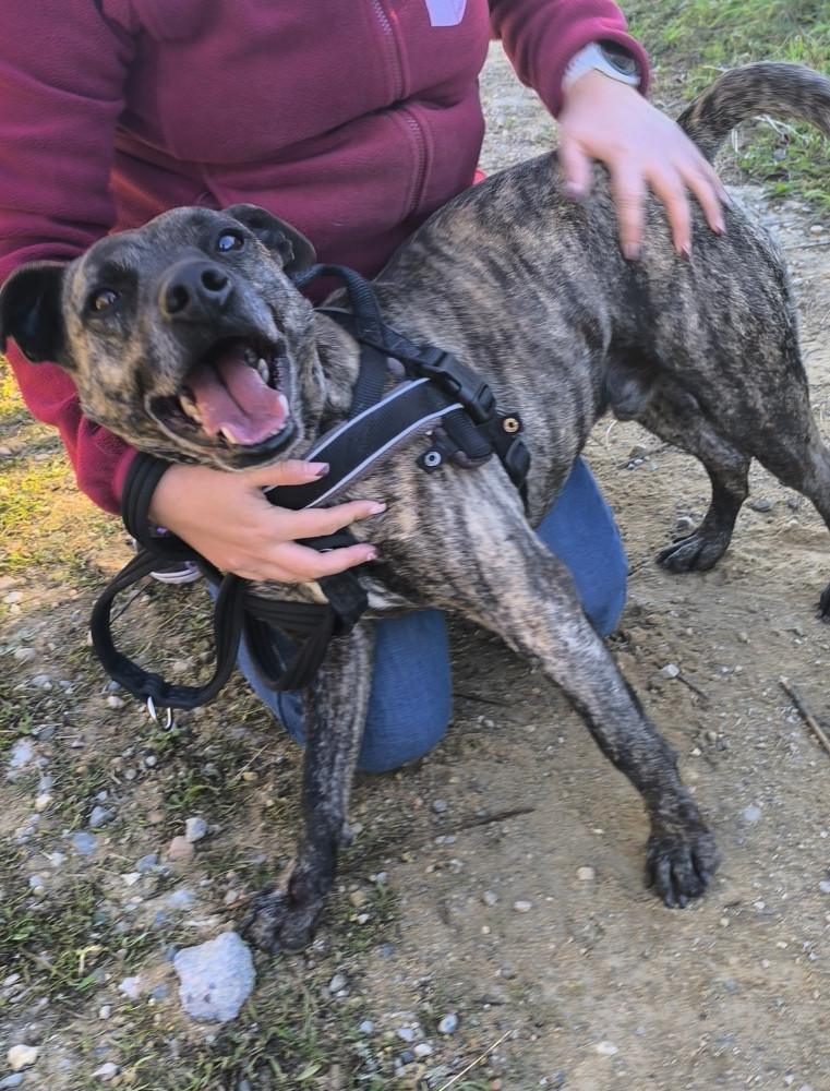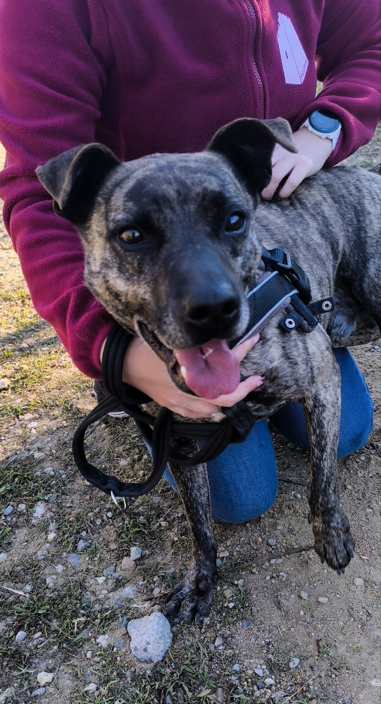 Os presentamos a este bonito mestizo de pelaje atigrado de unos 4 años que llegó hace 1,5 años, en este tiempo Tiger ha salido de paseo muy poco, con lo cual le ha generado mucho estrés, a pesar de ello, le gusta estar con las personas y se muestra alegre cuando alguien le presta atención. Es obediente, paciente y aprende rápido, la verdad que con correa pasea bien, cuando se cruza con perros se pone algo nervioso pero nada que no pueda arreglarse, pero está solo en una jaula y no está acostumbrado a relacionarse con otros perros. Cuando adoptamos un perro que viene de estar mucho tiempo en una jaula, demuestra su verdadero carácter en su hogar y para algunos la adaptación es cosa de meses.