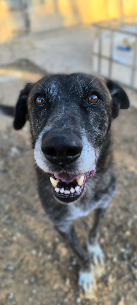 Desconocemos su pasado y poco podemos contar de su carácter, es un perro que en un principio va a su aire, más bien está como entristecido, no entiende nada, es una injusticia muy grande que estos inocentes seres terminen encerrados sin ser culpables de algún delito, hemos descubierto también que poco a poco nos va abriendo su gran corazón.
