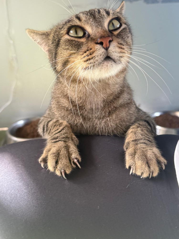 El 24 de diciembre de 2024, mientras muchos celebraban la víspera de Navidad rodeados de familia y calor de hogar, Pontiac llegó a la protectora. Un gato adulto, cariñoso y sano que, con toda probabilidad, fue víctima de un abandono. En una fecha que debería estar llena de amor y generosidad, alguien decidió dejarlo atrás.