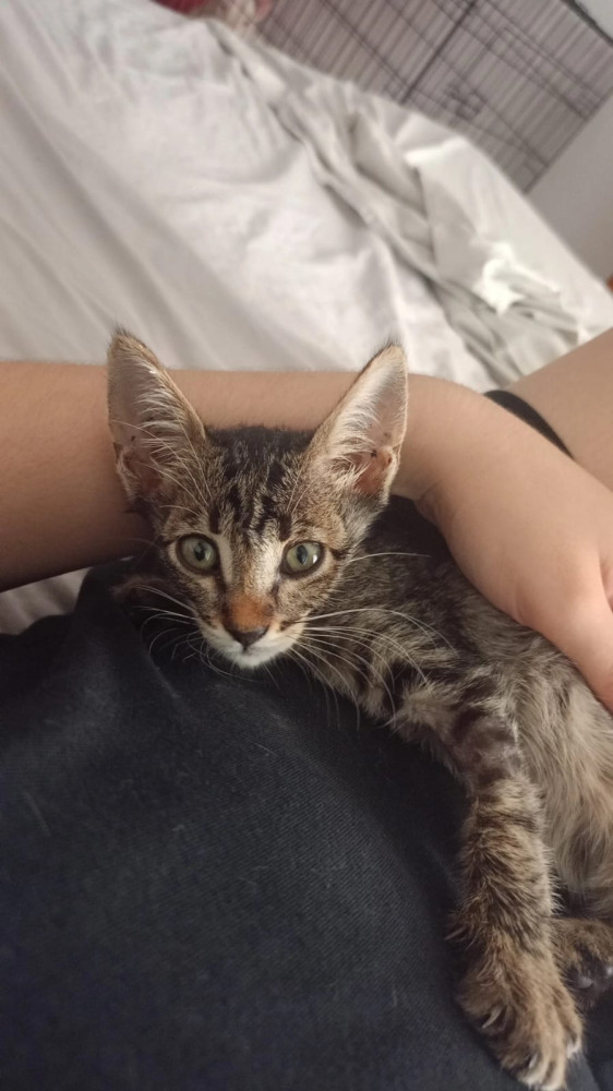 Encontramos para ella una casa de acogida donde se está recuperando y nos comentan que ahora que ha cogido confianza es súper cariñosa y juguetona. Además es muy comunicativa y si tiene hambre, sed o necesita ir a su caja de arena te avisa maullando. Aún se asusta un poquito pero es muy buena y espabilada y en poco tiempo aprende a confiar.