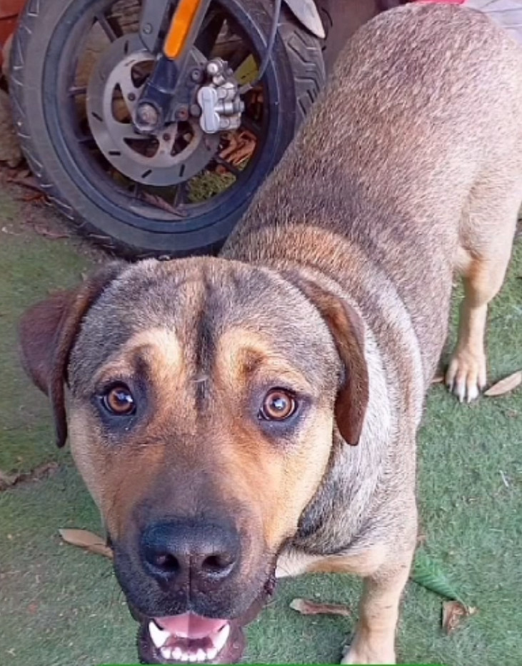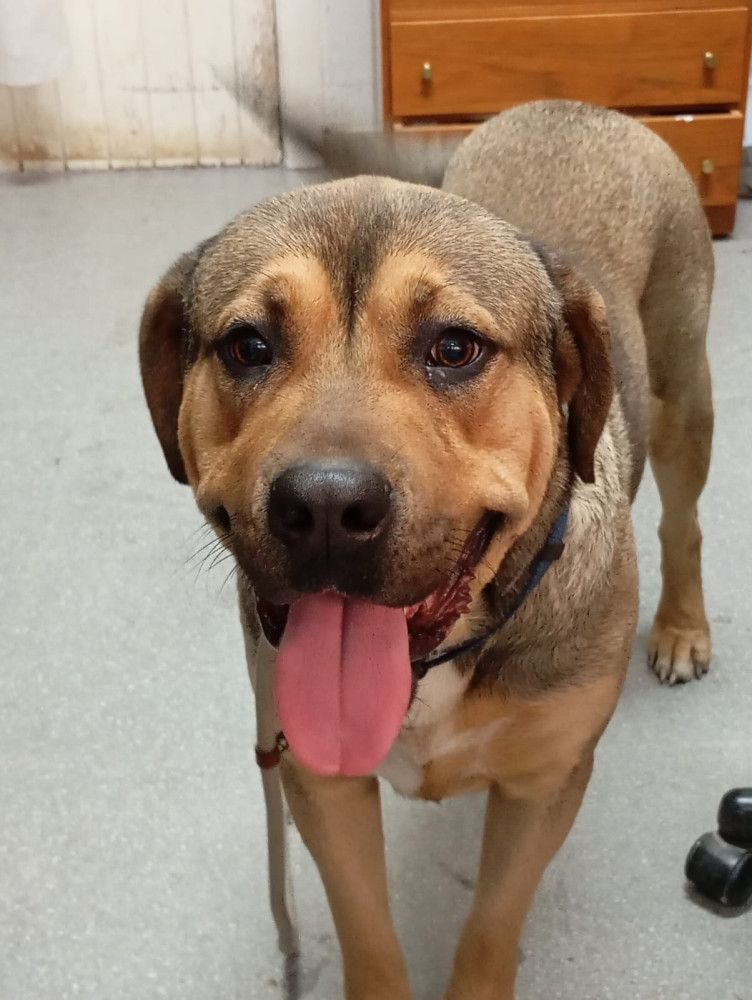 Winnie apareció en una finca en pleno agosto en plena ola de calor. Se pusieron carteles y se avisó a los vecinos de la zona pero parece ser que a nadie le importaba su existencia, así que lo acogimos en las instalaciones para buscarle una buena familia.